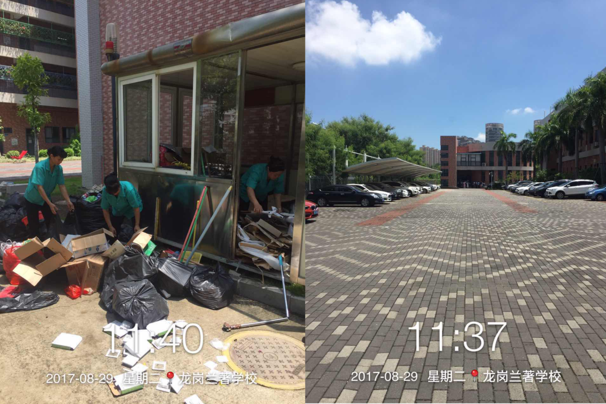 8月28日,29日,30日,为给学生一个窗明几净,绿草如茵的校园,配合学校实行迎接新生到来的准备,DB真人旗舰DB服务的学校项目各处特组织员工召开校园内外大清扫,扫灰掸尘的同时,不忘清查各处安全隐患。废铁屑,废纸盒一一打包转移,不给孩子的平安入校留下任何麻烦,无用占堆放空间的杂物,清扫人员询问学校后处理,合理运用断舍离,为学校腾出更多有用空间。