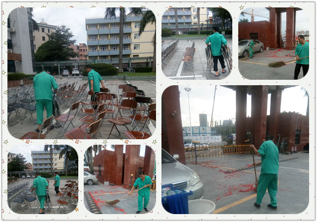 为保障此次送兵仪式的圆满完成,也为表达对欢送仪式后勤服务这一任务的重视,DB真人旗舰DB平湖街道项目处特组建了欢送仪式的临时工作小组,并多次开会商讨服务方案,打磨小细节。确定参与人数,安排摆放桌椅,清扫地面难清理的死角,确定燃放炮仗的周边环境是否安全,以及结束后的地面清理和东西复原等工作安排,工作组坚信“不放过一个细节就不会出现一次纰漏。”